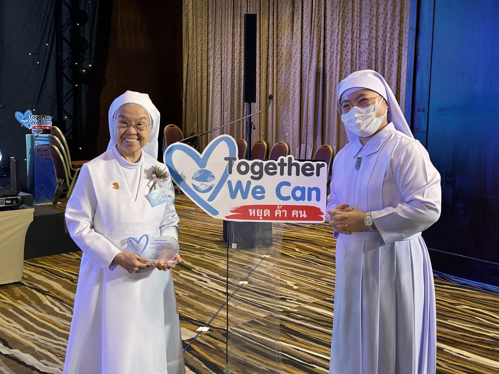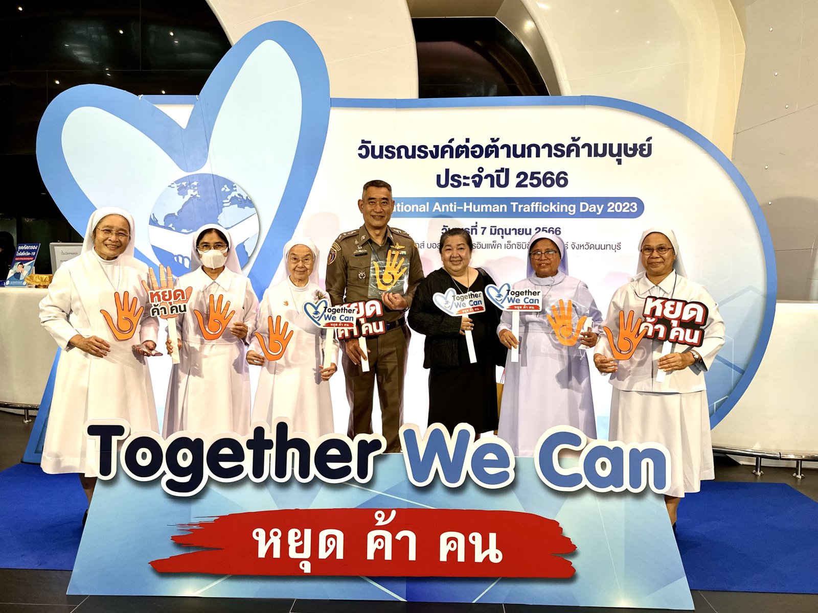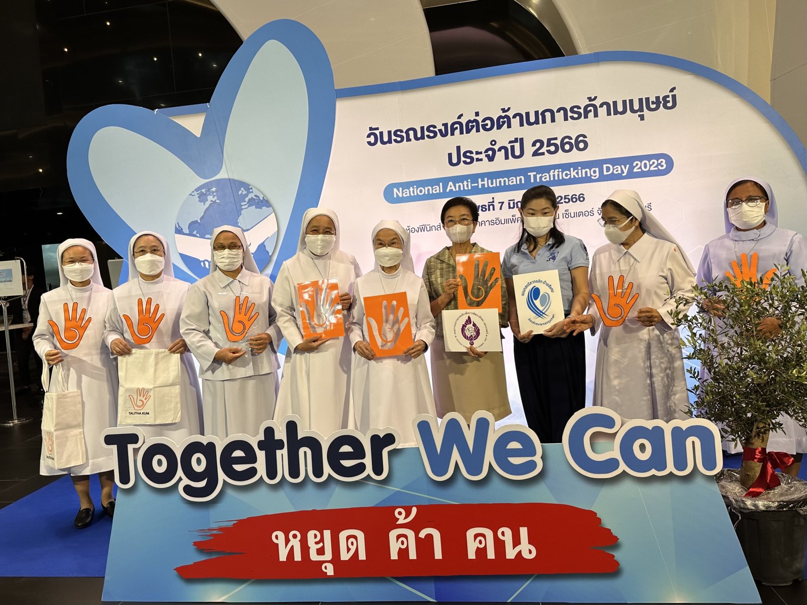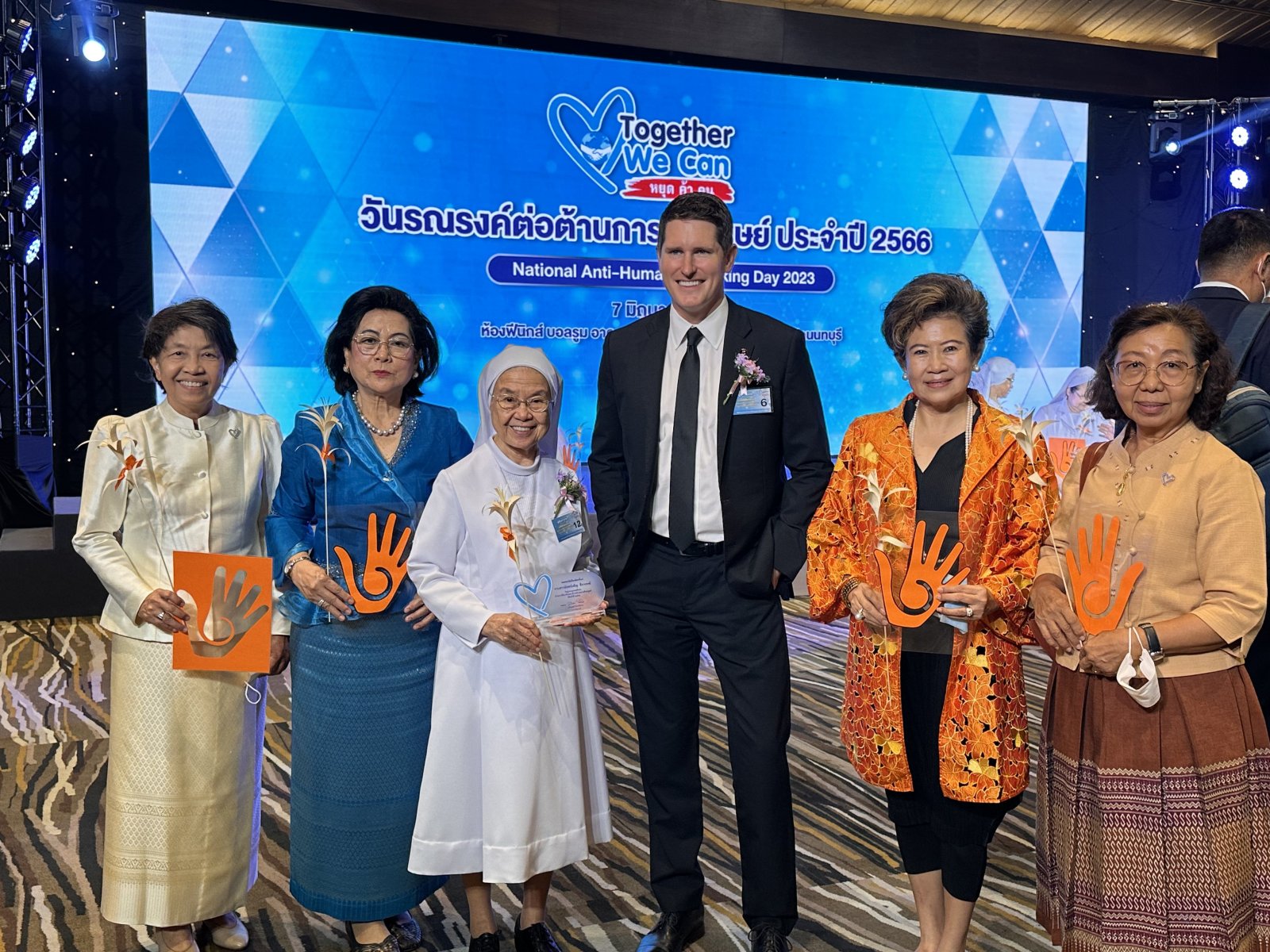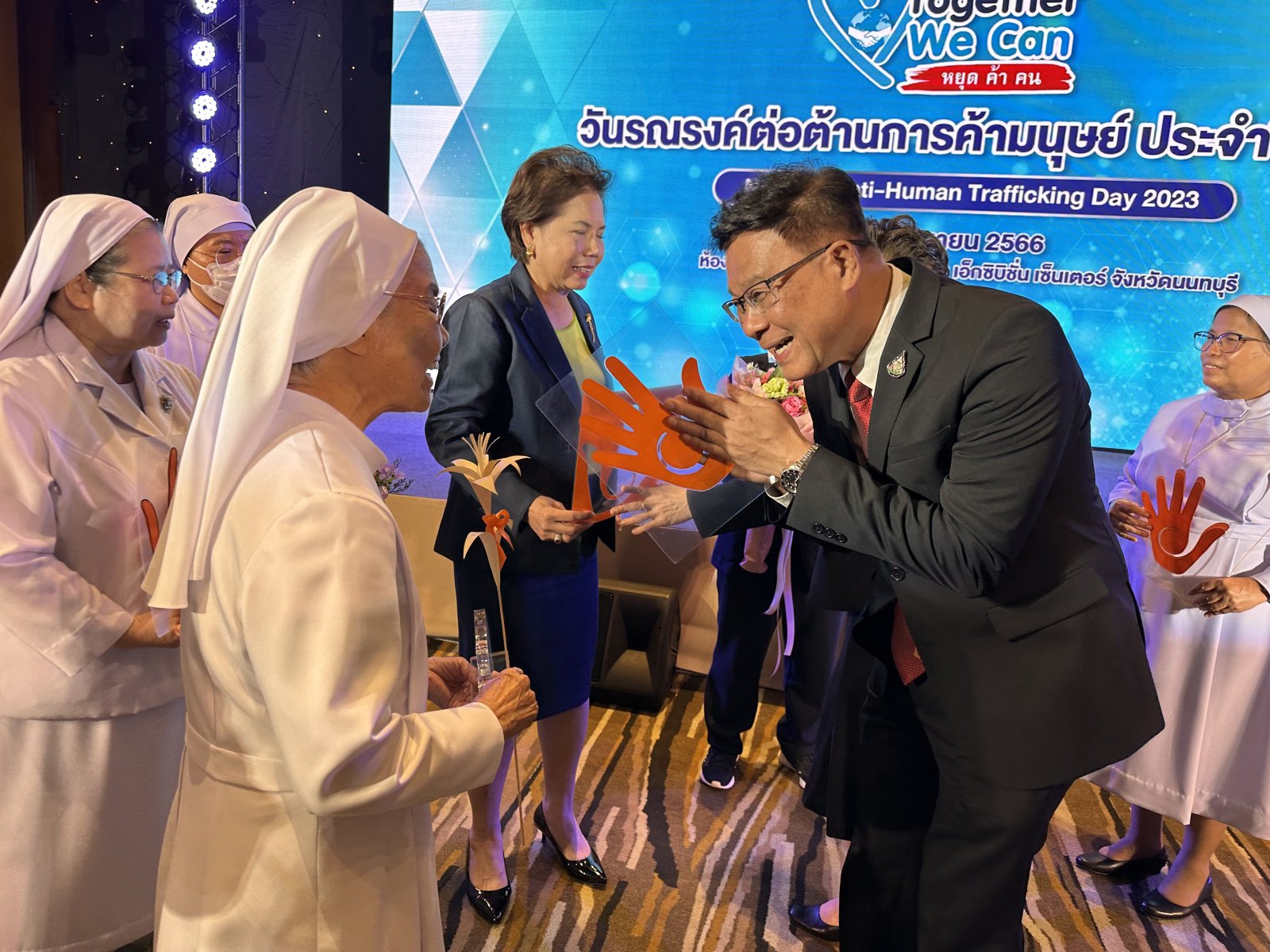 On June 7, 2023 at 9:30 a.m. Mr. Chuti Krairiksh, Minister of Social Development and Human Security (Minister of MSDHS) Presided over the opening ceremony of the 2023 Anti-Human Trafficking Campaign under the theme “Together We Can Stop Human Trafficking” and presented outstanding awards in the prevention and suppression of human trafficking. and prizes for the TikTok video clip contest against human trafficking. There is also an exhibition of the works of award recipients. Anti-Human Trafficking Performance in Thailand and litigation, defense and protection agencies. as well as displaying products of victims of human trafficking There were 400 people attending the event at the Phoenix Ballroom, Impact Exhibition Center, Nonthaburi. And via online system, numbering 400 people, Sr. Francoise Jiranonda Chairperson of Talitha Kum, Thailand received an Outstanding Practitioner on Anti-Trafficking in Persons 2023 award.